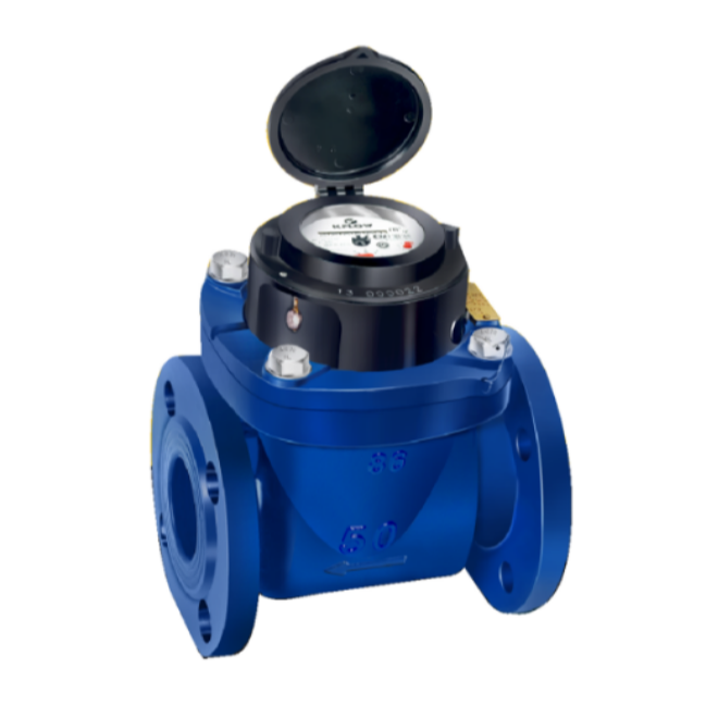 This water meter operates on the velocity principle, using a turbine mechanism (Woltman type) that rotates proportionally to the flow of water. The rotation is transmitted through a magnetic coupling to a dry-type totalizer, ensuring that readings remain precise and unaffected by water impurities or external magnetic interference. The measuring chamber and rotor are made from corrosion-resistant materials, ensuring long-lasting performance and minimal maintenance.